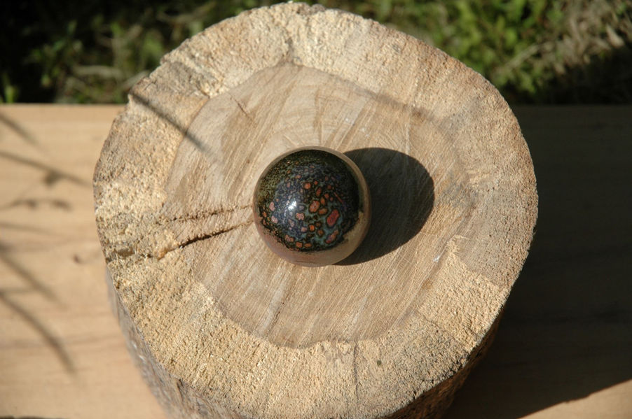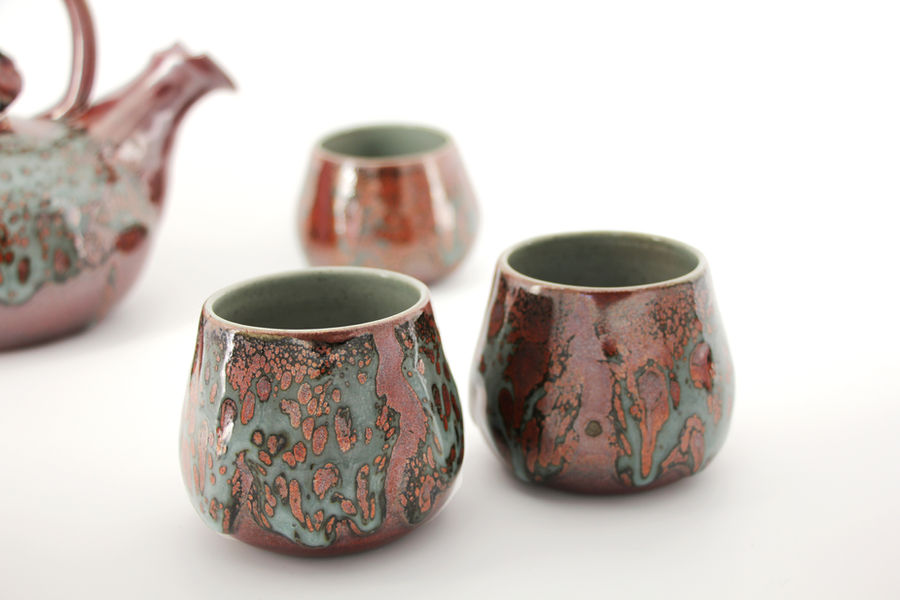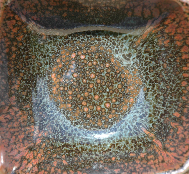 Mélange d'émaux. L'un couleur lie de vin L'autre couleur Céladon gris, bleuté, vert d'eau, vert tendre.Ensemble ils dessinent des gouttes et des cœurs cerclés de noir.